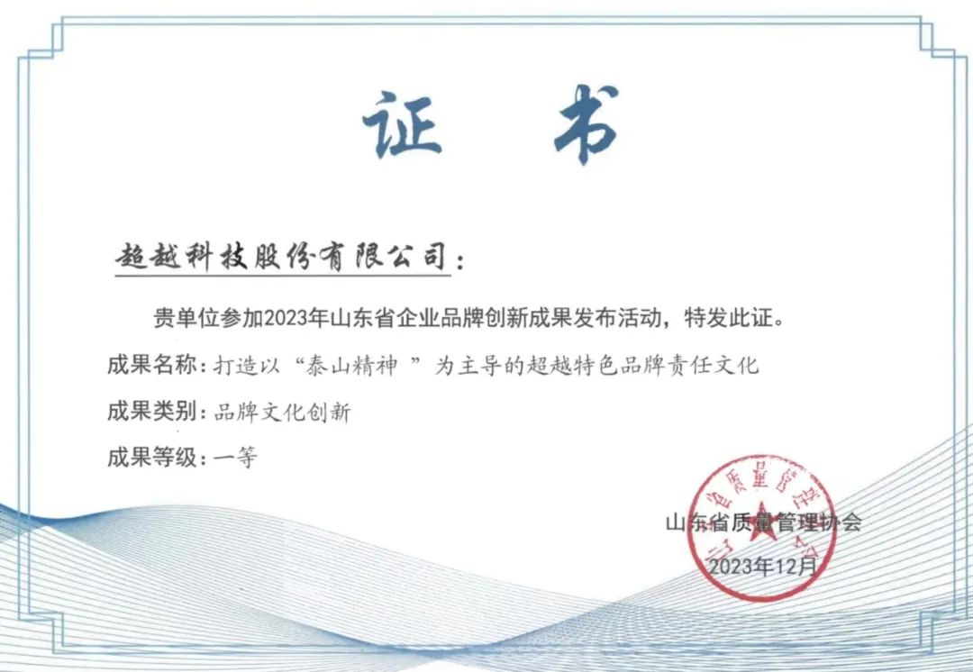 品牌是企業(yè)核心競爭力,是經(jīng)濟發(fā)展的風向標。近年來,超越科技堅持以泰山精神為主導,高度重視品牌建設(shè)與創(chuàng)新,積極發(fā)掘品牌價值,不斷豐富品牌內(nèi)涵。未來,超越科技將持續(xù)推進品牌戰(zhàn)略,多通路提升品牌聲量,驅(qū)動品牌影響力邁上新臺階!